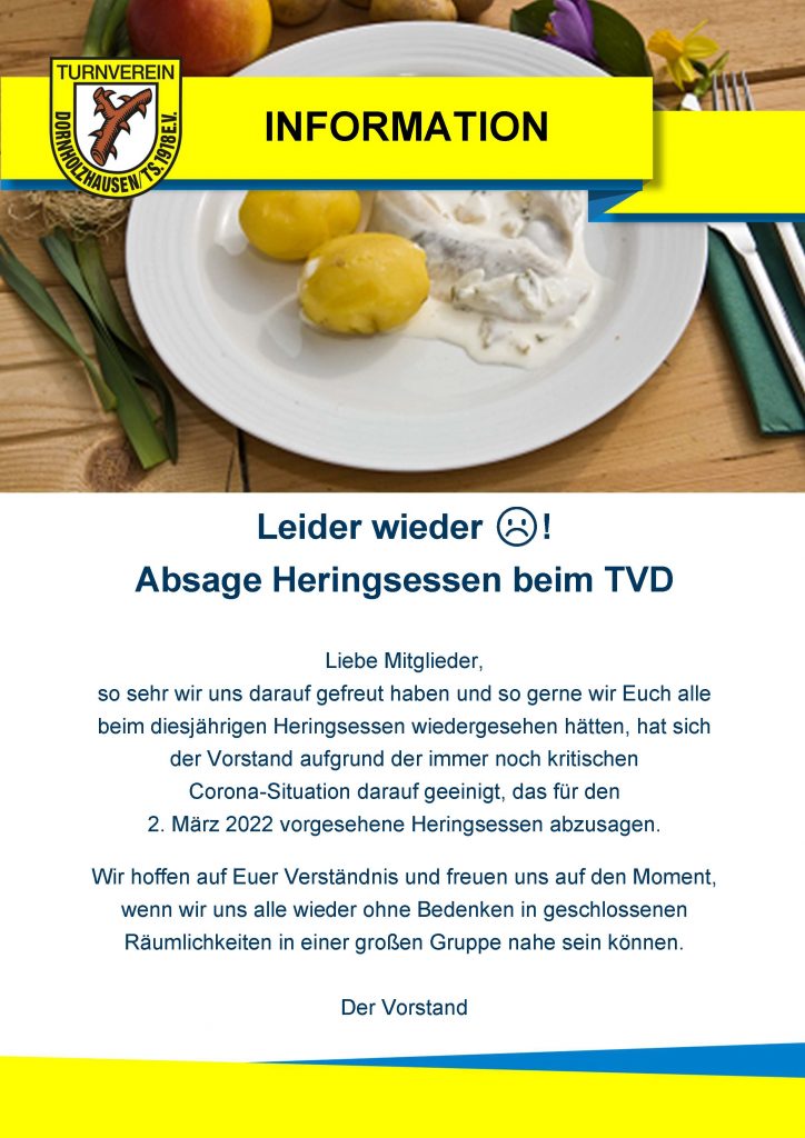 Leider müssen wir wegen Corona auch das diesjährige Heringsessen absagen.