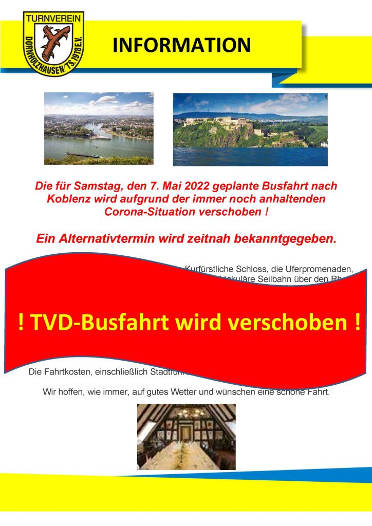 TVD Busfahrt am 7. Mai 2022 wird verschoben