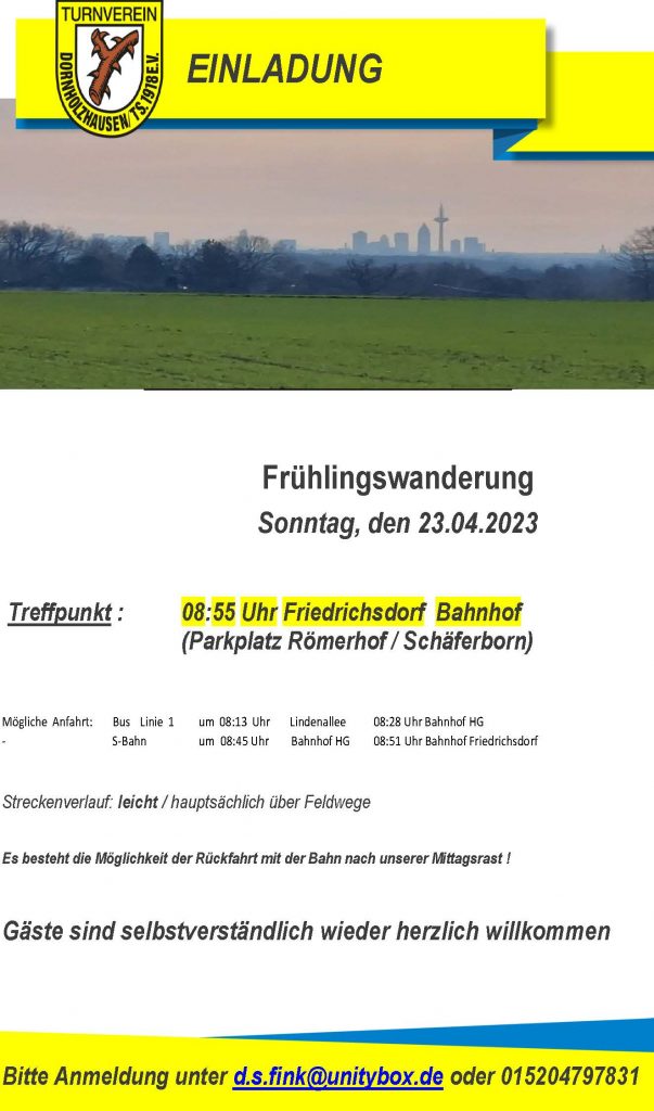 Die Frühlingswanderung startet um 08:55 Uhr ab Bahnhof Friedrichsdorf.