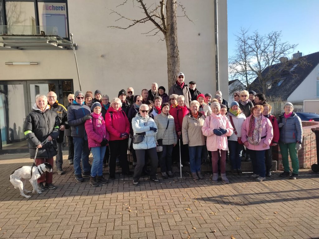Startpunkt war am Samstag, den 11. Januar 2025 um 14.00 Uhr an der Turnhalle in Dornholzhausen. Dort fanden sich zur ersten Wanderung in diesem Jahr über 40 Personen ein. Nach dem obligatorischen Gruppenbild ging es bei bei strahlendblauem Himmel und trockener Kälte Richtung Saalburg. Mit einer kurzen Rast erreichte die Gruppe nach gut einer Stunde stetig bergauf die Zwischenstation bei der ehemaligen Straßenbahnwartehalle der Saalburg. Dort wurde eine Verpflegungspause eingelegt und eine kleine Gruppe hat sich verabschiedet, um im Vereinshaus einen Imbiss als Abschluss vorzubereiten. Diese Abgänge konnten wir durch geplante Neueinsteiger kompensieren. Der „Lindwurm“ zog dann an der Jupitersäule vorbei, um sich unterhalb des Marmorsteines wieder Richtung Dornholzhausen zu bewegen. Nach knapp 3 Stunden wurde der Endpunkt „Vereinshaus Dornholzhausen“ erreicht. Dort fand der Abschluss bei Glühwein, Zwiebelkuchen und Eintopf statt.