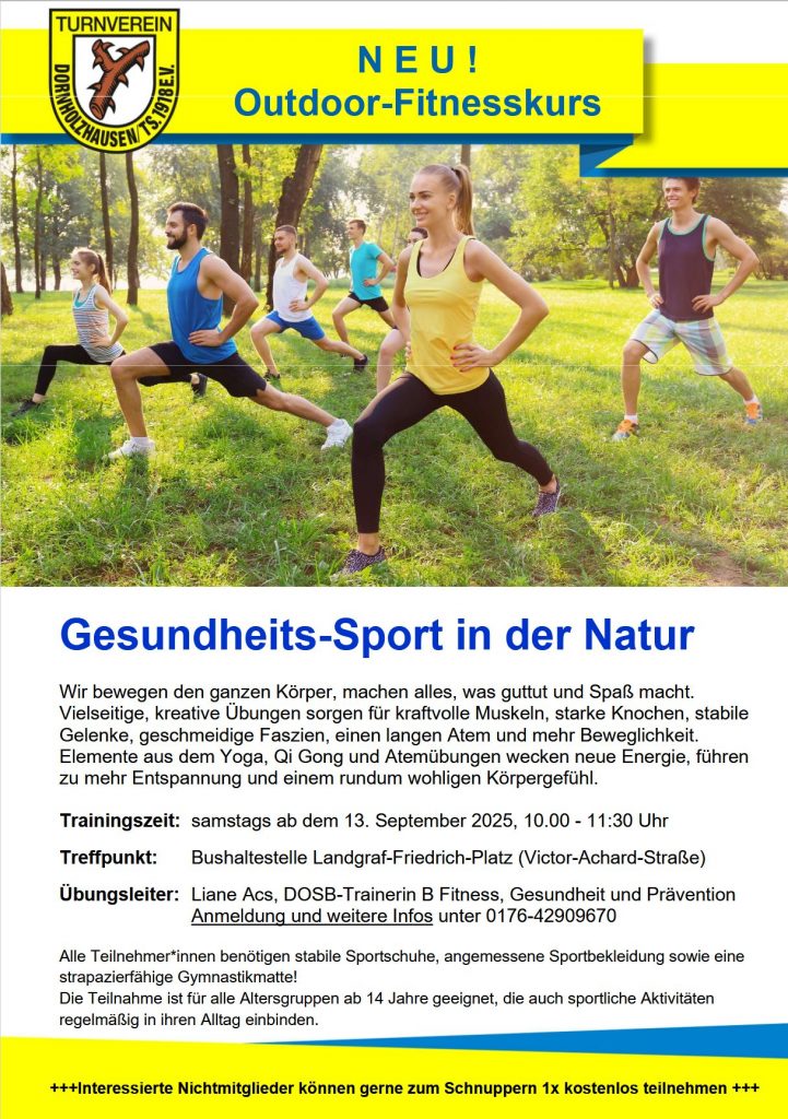 Beim Gesundheits-Sport gibt es eine Änderung: Der Treffpunkt bleibt, aber der Termin wurde auf samstags 10:00 – 11:30 verschoben.