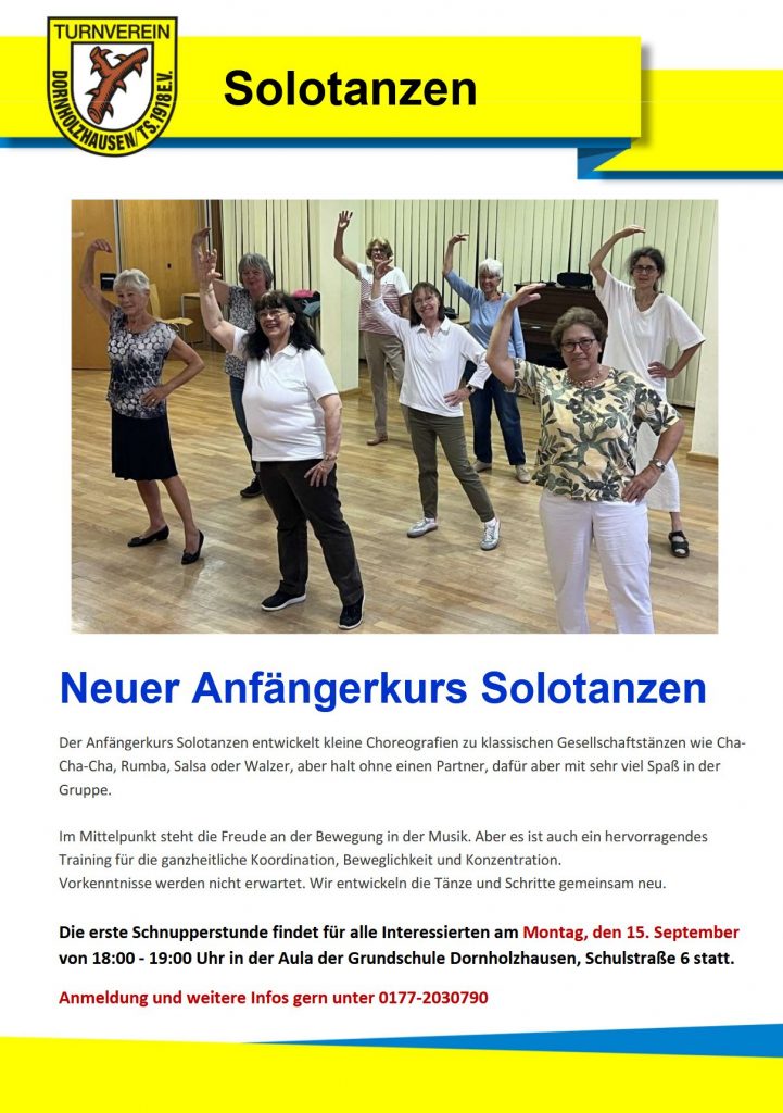 Ab Montag, den 15.09.2025 bieten wir einen neuen Kurs Solotanzen für Anfänger an.